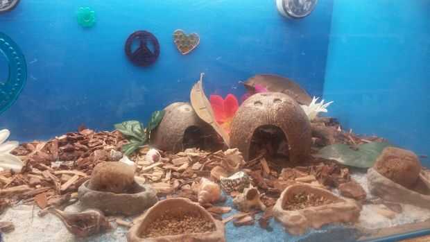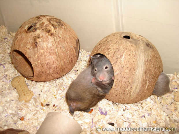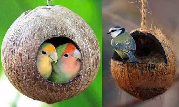 Cáscaras de coco pueden ser ahuecados y utilizados como viviendas para mascotas pequeñas como hamsters, aves y cangrejos ermitaños.