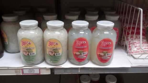 El agua de coco puede ser fermentado para hacer una jalea como producto alimenticio llamado Nata de coco. Nata de coco es más edulcorada y sirvió como un dulce o postre.