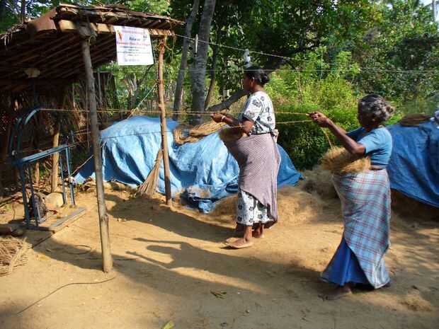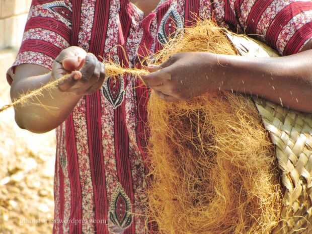 Las fibras de la cáscara del coco pueden ser separadas y marca en una cuerda muy fuerte.