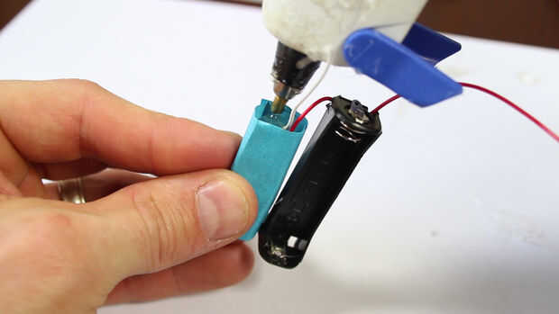 El último paso es doblar el papel alrededor del circuito y llenar con abundante pegamento. Esto debe fortalecer los componentes mantiene firme en su lugar.