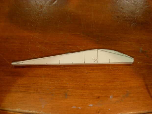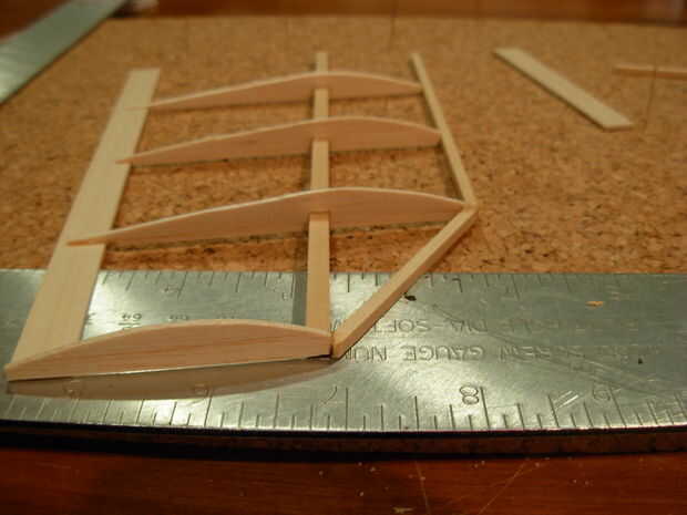 Se trata de algo difíciles de explicar pero Configure (falsa puesta en marcha de la punta de ala) contra una plaza y mide 1 1/2" hacia abajo desde el borde de ataque, esto es fueron el mástil va para que se alinee con el segmento del ala principal. Las tres primeras costillas que puedes ver (de izquierda a derecha) es generalmente cónico de 5" a 4" entonces el último 2" es de 4" a 3". Espaciadas las costillas en las puntas de las alas cada 2". El borde de fuga y el mástil son ambos 8" y el borde se corta en segmentos de 6" y 2". Todo lo hice a las costillas se corta el borde de las costillas en incrementos de 1/4". luego la punta del ala es de 2 1/2". CA entonces dar toda una vuelta juntos.