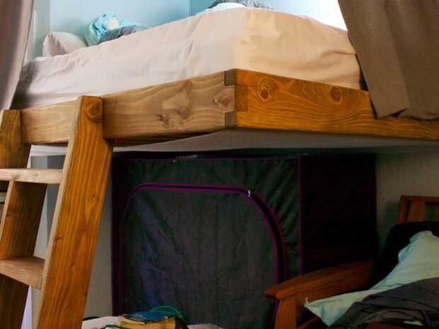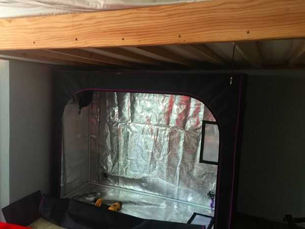 3. encontrar espacio en cualquier lugar. Si tienes una cama tipo loft, tiene espacio para un jardín. Lo Loft cuatro pies de alto y este crecer tienda encaja perfectamente hacia los lados. También a crear espacio para almacenamiento.