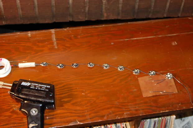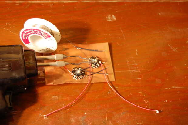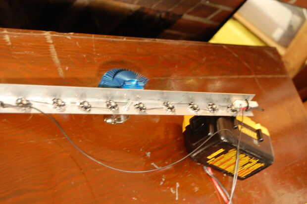 Mayoría de estos poder más elevado, eficacia alta LED funciona de 3,5 a 4,0 voltios. Ahorrar dinero no vamos a usar el conductor actual constante de recomendados, pero de alambre directamente en serie. (36 V / 9 LEDs) = 4,0 voltios por LED.