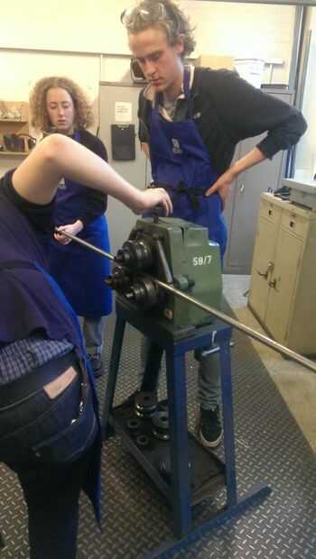 tomó dos varas de acero 3m 19mm de diámetro y ponerlos a través de una máquina de balanceo para obtener nuestra curva.