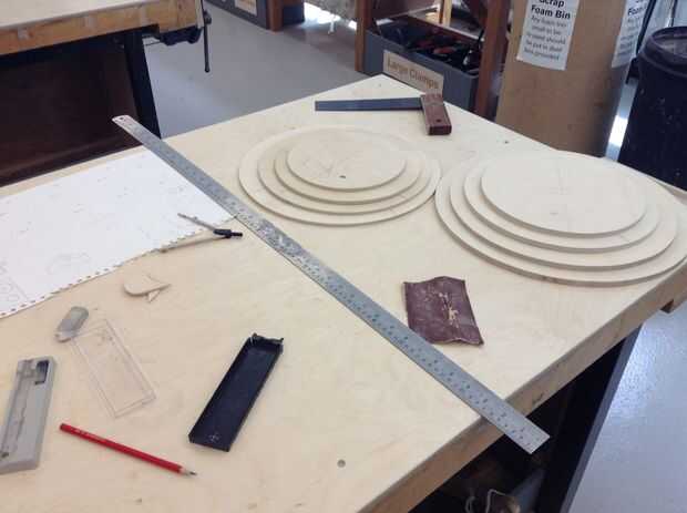 para las ruedas solo cortamos dos círculos del mismo tamaño de capas de 6 mm y un círculo ligeramente más pequeño por lo que cuando está intercalados juntos hacen una forma de rueda delgada con una ranura lo suficientemente grande como para un 4 mm cable tostado tanto como sea posible dentro de. con las ruedas pegadas nos luego barnizada les para un final agradable.