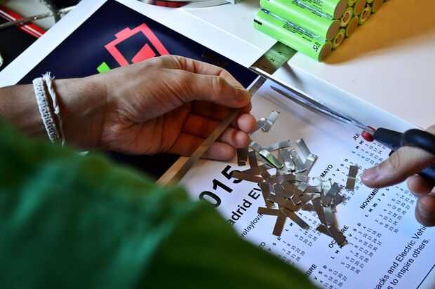 Construcción de un 36V 8.7Ah 18650 litio-ion batería de células de una bolsa de bici pequeña asiento.