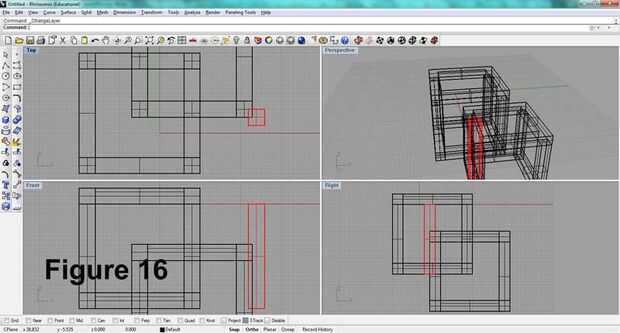 20. Utilice la herramienta mover para mover cubo grupo a derecha en el cuadrante superior izquierdo. (Figura 16)