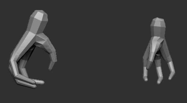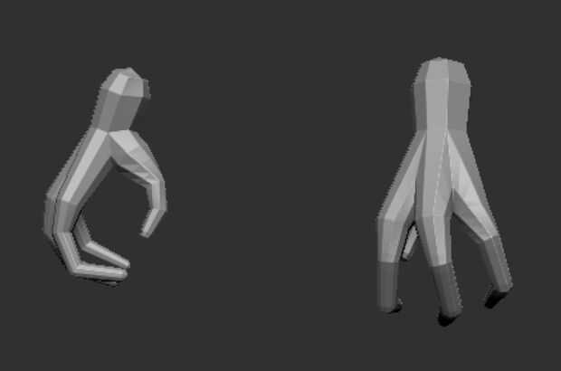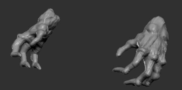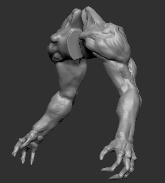 las manos y el brazo de proceso es similar a la pierna. comenzar con un bloque de forma básica a la refine los dedos el detalle. Añadir tubo cilíndrico para crear armas. y comenzar a unir todas las partes separadas juntos (en Zbrush puede combinar la parte juntos y DynaMesh a fusionar toda la parte).