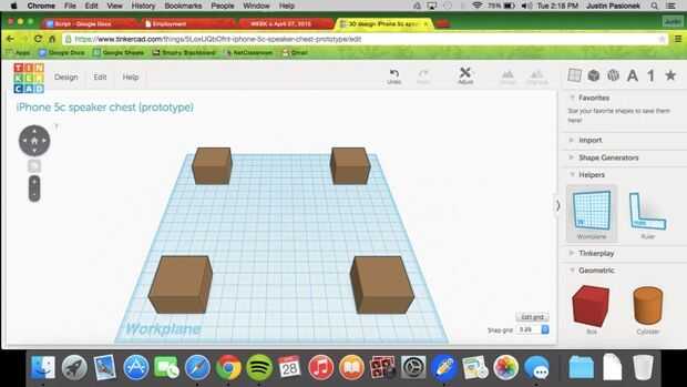 En primer lugar, que desea crear una base o un soporte para el altavoz. Seleccione la opción de cubo y llegar a un tamaño específico (las medidas están en las fotos). Una vez usted conformar uno el duplicado ese proceso cuatro veces hasta tienes todo alineado. Después de que ahora quieres hacer la parte inferior, nuevamente seleccione la opción de la caja pero esta vez estirarlo hacia fuera sobre los cuatro cubos donde hace un fondo. Asegúrese de que se alinea. Ahora que tienes una base, usted puede comenzar a crear la parte superior del altavoz del pecho del tesoro.
