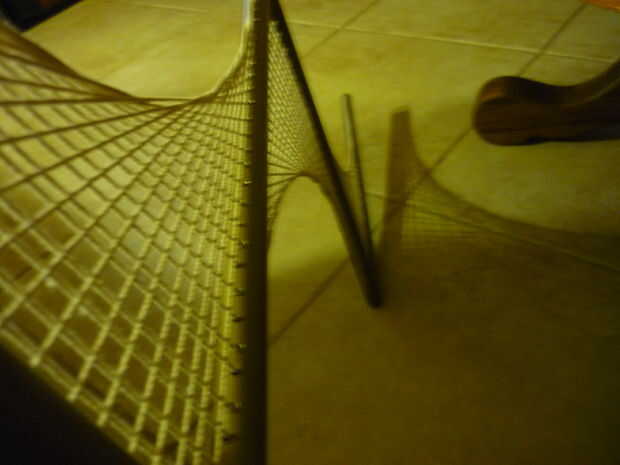 Mantener en él, rosca cada sección con la guita y cuando terminé atado al final a la siguiente sección cuando estaba terminado con la siguiente sección. Sólo un nudo simple caja y utiliza un poco de pegamento caliente para asegurarse de que el nudo no va a ninguna parte. Una pequeña nota, asegúrese de que cuando enhebrar cada sección de la cuerda que sale de un lado de la tubería en la parte superior, y la guita por otro lado es en la parte inferior, basta con mirar las fotos y puedes ver lo que quiero decir, que casi estaba hecho con la primera sección y me di cuenta de que cada otra línea estaba mal y tuvo que empezar todo de nuevo. No se preocupe de hacer super apretado en primera, espere hasta que todo, luego estire cada línea hasta su todo bien, tal vez 2 o tres veces dependiendo de cuan crespo quiere que sea. Cuando lo ha hecho salsa en el hecho de que se construyeron esta cosa y nadie más tiene esta misma pieza en cualquier otro lugar.
