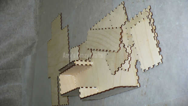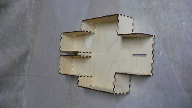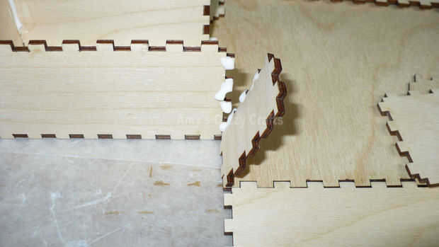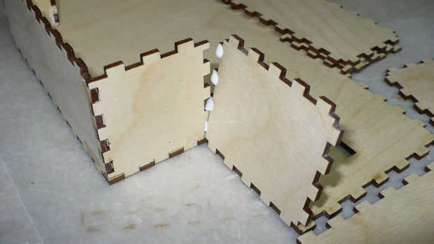 Glue the sides to the back.  Empezar en medio de las piernas, que es la parte más difícil para reunirse, luego entrenamiento en un círculo.  No pegar la parte superior de si quieres salir fácilmente dinero.  El interior esquinas necesitará pegamento en dos lados pueden tomar algunas maniobras para conseguir todas las piezas para encajar.