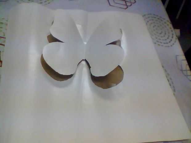 Doble la forma de la mariposa por la mitad para que el doblez está en el centro de las alas. Luego la cinta / pegamento abajo del pliegue doblez solamente. Esto es lo que crea el efecto 3D.