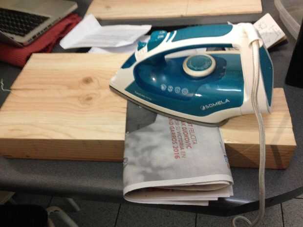 Primero se tiene imprimir a escala el esquema de la placa en un papel brillante, yo uso papel couche de 100 gramos, ademas tiene ser impreso en una impresora láser. Esto porque la tinta se traspasa con el calor. Para esto se tiene planchar, durante diez minutos con temperatura media, la hoja couche sobre la placa, como se ve en la foto y en el video. Luego se deja reposar unos cinco minutos en agua fría, para soltar el papel y solo quede la tinta en la placa.