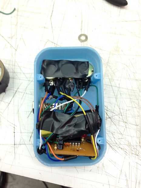 Luego de muchas pruebas pude no meter todo dentro, lamentablemente la placa trasera calza perfectamente con la carcasa, por eso esta cerrada con cinta aislante. Embargo de pecado, considero es un exito para ser un primer proyecto de electronica, si bien es simple, necesita de mucha investigación previa y de conocimientos muy especificos. Ademas, la combinacion con pastel de 3D dan de el modelado e impresion un muchas posibilidades de diseño con el APC.