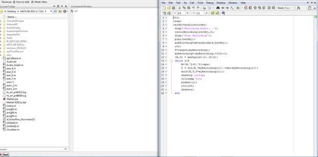 Cuando se guardan los datos, los valores de 'double' aparecen como positivos y negativos, así que para parar el gráfico de los bancos hacia abajo una y otra utilizamos la función valor absoluto * abs(myRecording(i)); para que el valor absoluto del valor doble de índice 'i' de doble array 'myRecording' se mantiene positivo. Si desea invertir el gráfico pero mantener estas propiedades puede multiplicar el valor absoluto del valor índice por (-1).
