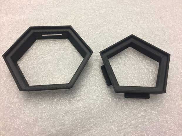 Esto puede tardar un rato dependiendo de la impresora. La forma de Pentágono (5 lados) requiere de 12 piezas y el hexágono (6 lados) requiere 20 piezas. Me engañó y una matriz vertical de cada uno para que mi impresora solo mantuvo impresión en la parte superior de una anterior (mi impresora usa de ruptura de material). Esto funciona mejor para evitar problemas de espacio de tabla, sin embargo, si la impresora no utiliza material disidente, usted tendrá que hacer uno a la vez. No he probado estas piezas en su lado de la impresión, pero que puede ser una opción para meter más de estos en su mesa.