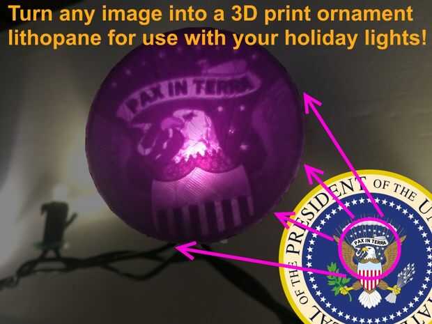 Este es mi 1 º instructivo y una entrada en el "desafío 3D del diseño impreso ornamento 2015". El diseño que estoy ofreciendo (véase abajo) es un re-mix del sello presidencial nos con una vuelta de vacaciones. Cambiado las palabras en la bandera del águila es llevar de E Pluribus Unum (de muchos uno) por Pax en Terra (paz en la tierra) para dar más de un espíritu navideño.