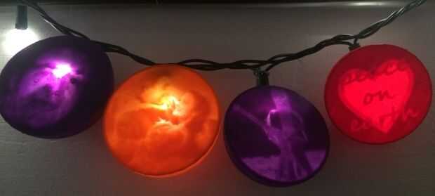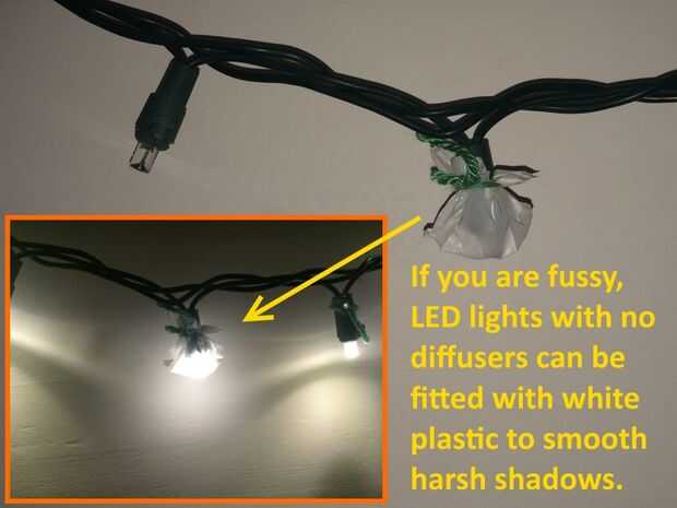 2. uno de los conjuntos de luces que tenía no tenía a difusores en sombras afiladas ellos y fundidas dentro de la ornamentación, usé un poco de bolsa de supermercado de plástico blanco para hacer un difusor. NO no trate este con luces LED no. Reciben demasiado calor para el material de la bolsa de plástico.
