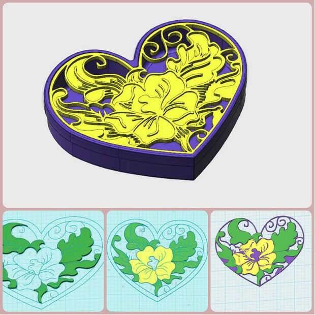 3D caja impresa del "Corazón". (1 / 3 paso)