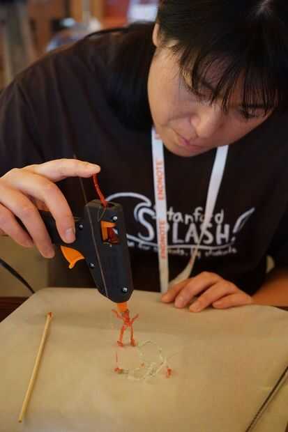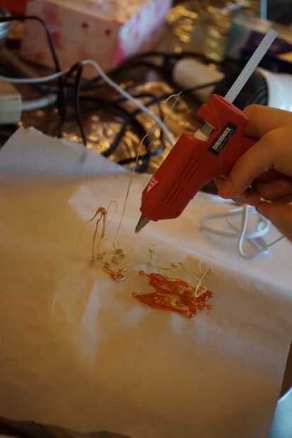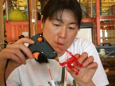 Poner el filamento de caramelo en el arma de pegamento y crear objetos 3D.