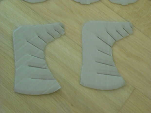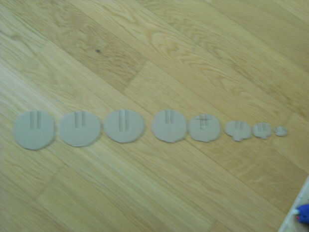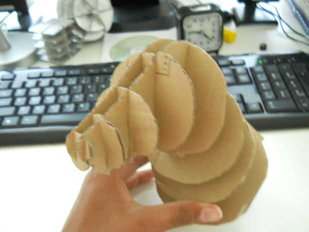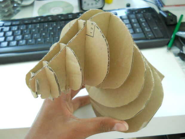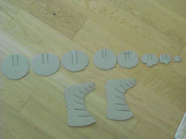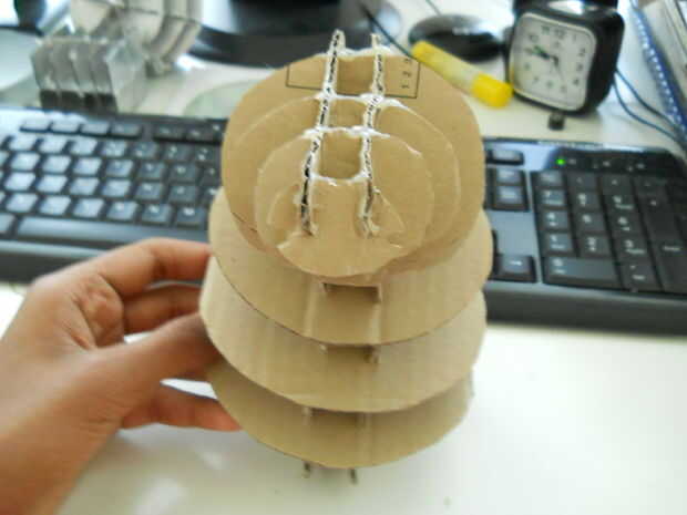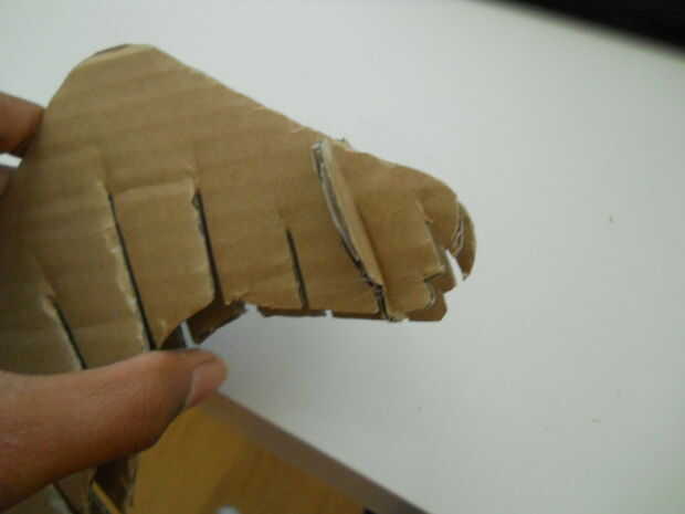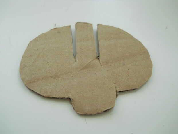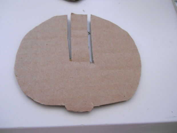 Primero corté un pequeño óvalo para la nariz y luego un pequeño óvalo más grande para el siguiente periodo horario y luego un óvalo más grande y así sucesivamente, sólo dando algunos detalles de cada pieza de cartón.