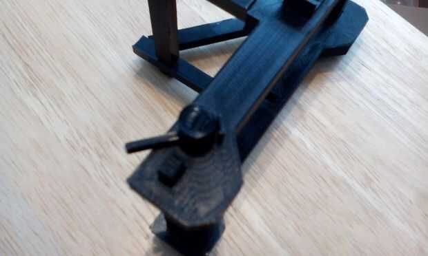 1) palanca va hacia el lado derecho de la catapulta en la cerradura del brazo. Asegúrese de que pieza de la manija es junto a la pieza base, para que la caché puede bloquear y sujetar el brazo en la posición de carga. La palanca debe también hacia la parte superior de la pieza Base.