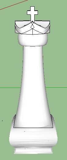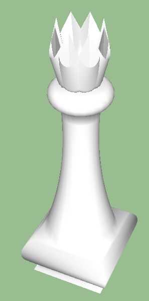 7. para crear un sombrero de obispo de casa de lujo corona, comenzar con un círculo. Crear líneas que va hacia arriba donde el borde del círculo es paralelo al eje rojo y que es paralelo al eje verde. crear líneas de la mitad de esa altura a mitad de camino entre cada una de estas líneas (todavía en el borde del círculo) repetir si quieres una corona más detallada. Ahora crear arcos que comienzan en la parte superior de su gama más alta, ir a la base de la siguiente línea de esa altura, si tienes sólo dos alturas de línea, o la parte superior de la línea más pequeña si tienes dos y el punto central (que determina la la curvatura) en la línea media. Ahora tienes un camino por seguir que imita a la up y swoops hacia abajo de una corona. Para el obispo, la cara que he usado fue una especie de media luna. La corona del rey utiliza un rectángulo como su cara. La reina utiliza a una especie de espiga.