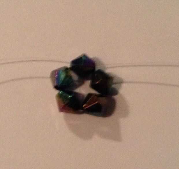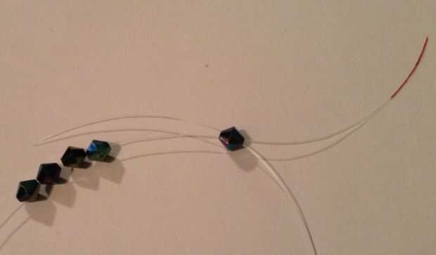 2. Ponga el extremo derecho de la línea (clara) a través del último grano que agregó en la dirección opuesta