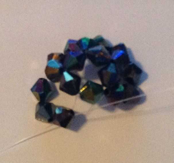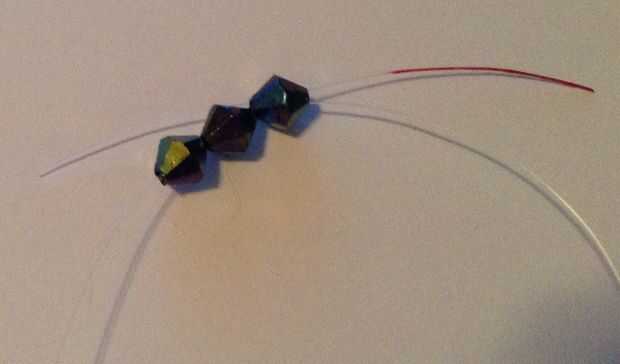1. poner 3 abalorios en el extremo izquierdo (rojo) de la línea