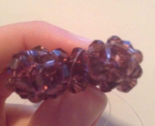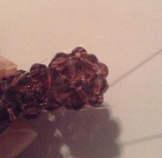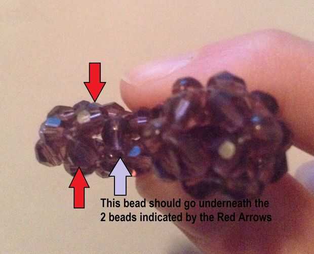 3. Tire del extremo izquierdo (pintado) al otro lado asegurándose que el grano que acaba de agregar Haz empujado por debajo de las 2 cuentas que vienen un punto hacia arriba