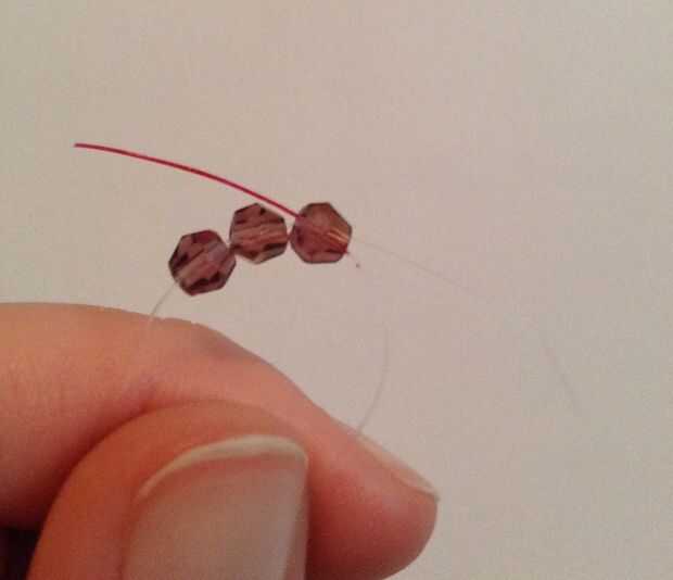1. poner 3 abalorios en el extremo izquierdo (claro)