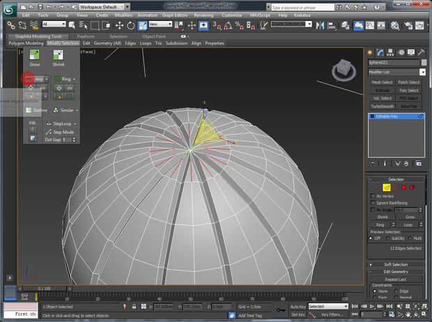-Seleccionar las aristas, como ver en la captura de pantalla y utilizando herramientas de modelado de grafito lazo las aristas seleccionadas.