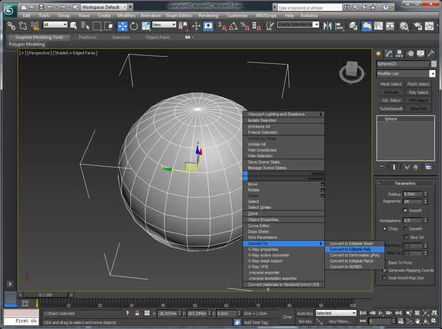 -Seleccionar y convertir el ámbito recién creado a "editable poly".