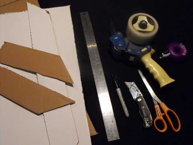siempre he disfrutado de hacer armas de papel o cartón de nada encuentro. Este es uno de mis favoritos.Materiales-cartulina 2 aletas de aproximadamente 5x10in.rodillo de la cinta de 1 conducto (no necesita todo)cortador de 1 caja1 reglapluma o lápizP