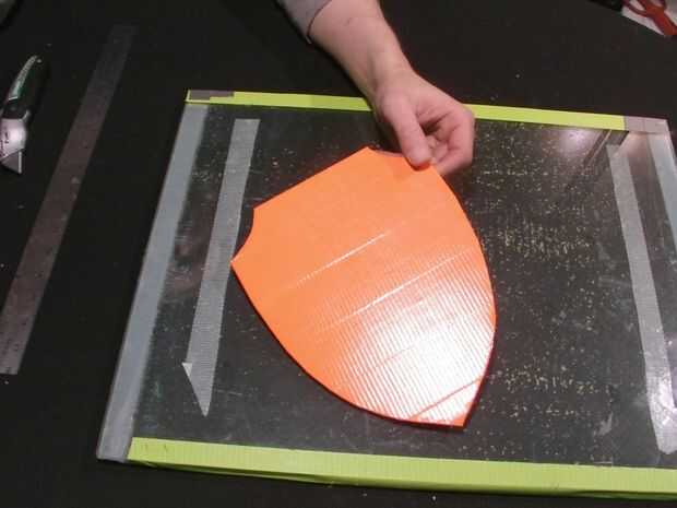5. Si imprimir en la cartulina se puede contemplar después de aplica la primera capa de cinta adhesiva para conductos, basta con aplicar otra capa de cinta en un ángulo de 90 grados a la primera capa. Hasta que la pieza está totalmente cubierta. Este paso no puede ser necesaria dependiendo del color o patrón que elija usar cinta adhesiva para conductos.