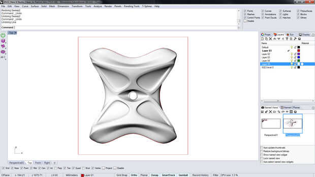 Tenemos que establecer el perímetro de nuestro molde. Cauchos del silicón la mayoría recomiendan un espesor de la pared del molde de 1/2"- 3/4", nuestro límite de molde va a necesitar tener aproximadamente distancia de nuestra parte. El comando rectángulo , dibujar el borde del molde, dejando el espacio necesario entre él y su parte.