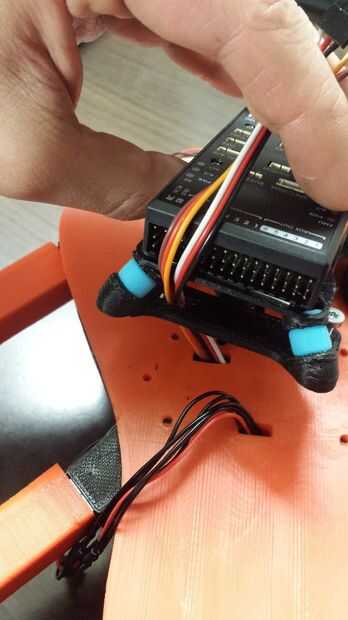 Siguiente: imprimir la FC de la ayuday en la parte inferior cortar un agujero cuadrado (uso de una cuchilla calentada por un mechero) en la proximidad del agujero para el cable de señal de la QBRAIN. Pase el cable por el orificio y conseguir el apoyo FC con 4 tornillos, Monte la bola de amortiguación y la parte superior.