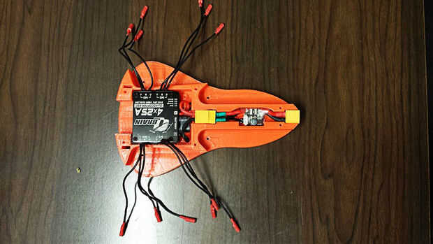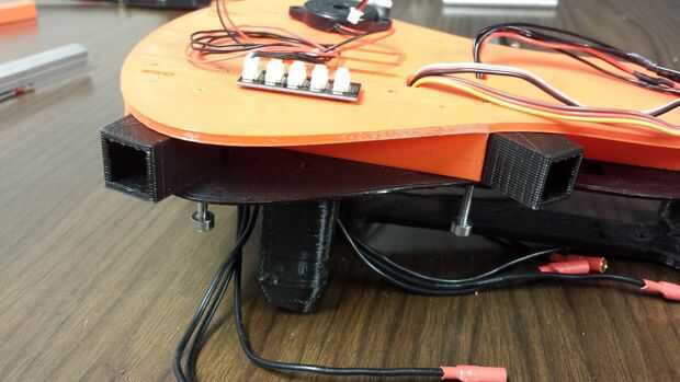 Iniciar con el marco superior, tienes que cortar y soldar nuevamente el cable de la QBRAIN y el módulo de alimentación en la caja de diseño, luego pasar el cable de señal en el agujero y poner todo en su lugar.