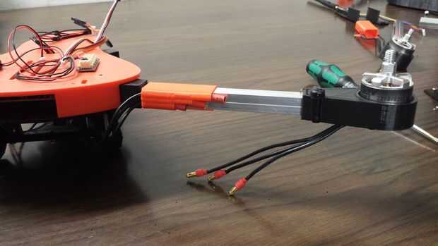 Ahora usted puede acortar el cable QBRAIN (sólo esto, porque tienes que probar la rotación del motor antes de acortar el cable del motor) mira la foto, usted puede cortar tanto como desee (Compruebe la longitud para cerrar y abrir el brazo), pero en este caso no puedo invertir el cable del motor si los desconecto. He intentado diseñar un fácil bloqueador de cable (no incluido) pero no estoy realmente satisfecho, tal vez un simple ziptie hará el trabajo mejor