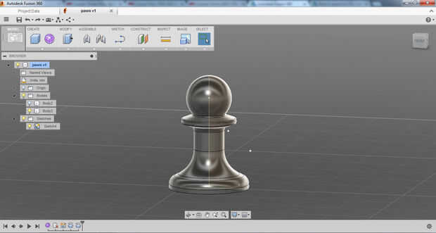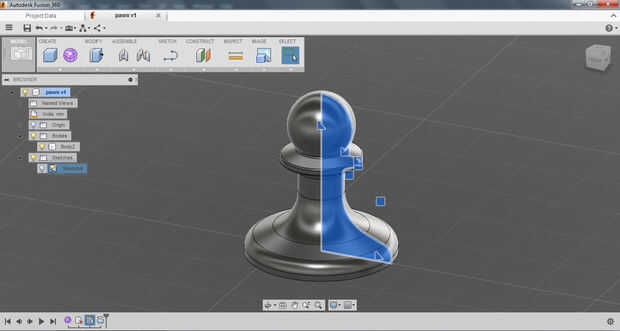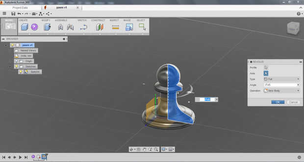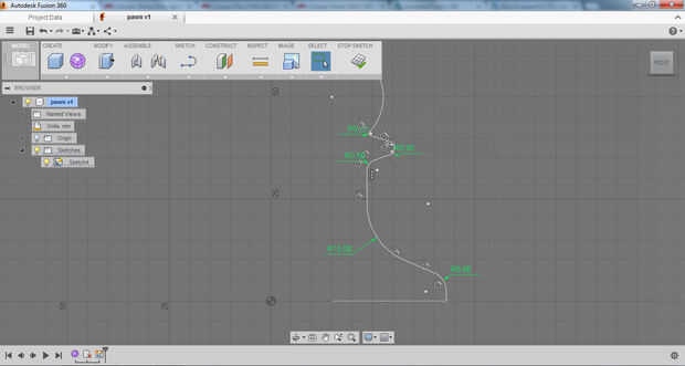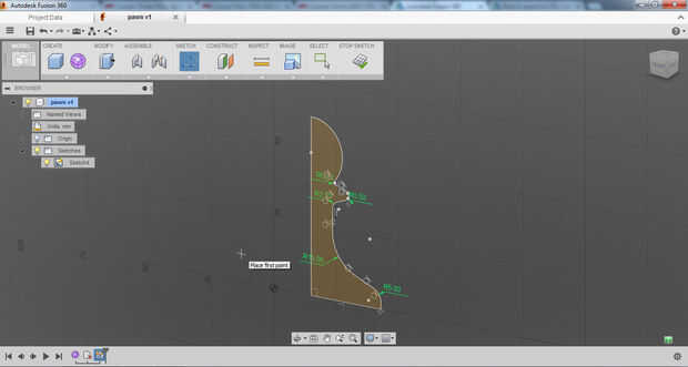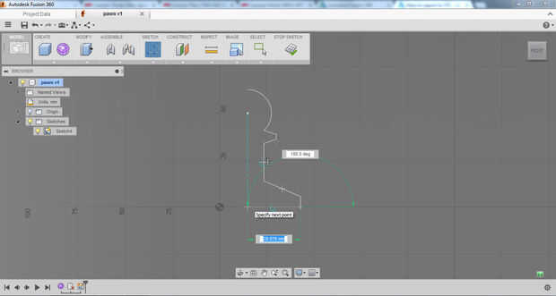 Yo primero bosquejó el perfil del peón utilizando las herramientas de dibujo de línea. No estaba demasiado preocupado por escala en primer lugar, que viene más adelante, sólo está consiguiendo la geometría básica en allí. Después de que el bosquejo inicial fue completado filetean las esquinas para darle un aspecto acabado agradable. Para completar el boceto y convertirlo en una región capaz de ser girado cerré la curva.