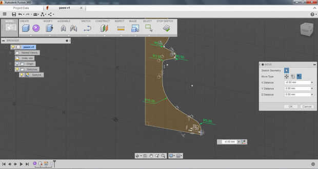 Volví en el bosquejo y utiliza los puntos de control de curva para modificar la forma final.