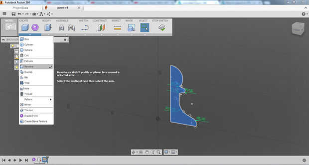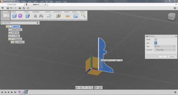 Luego usé la herramienta de revolución para seleccionar la región, luego seleccione el eje. Una vez que se giraba en la forma he decidido que no estaba contento con la forma final.