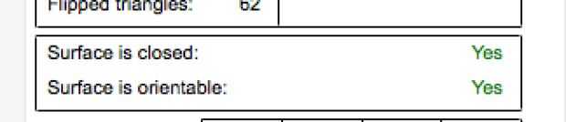 Si todo fue reparado en la primera ronda, "los agujeros" debe leer 0 y "La superficie es cerrada" debe decir "Sí"