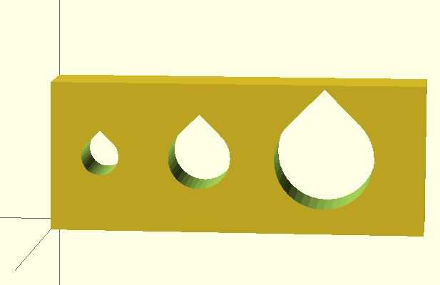 En el archivo OpenSCAD, he proporcionado un módulo que hace lágrimas dados una altura y radio.