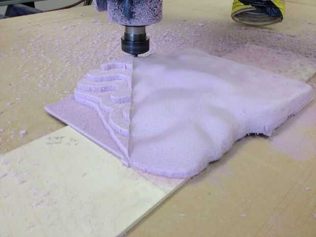 He utilizado el aislamiento de espuma de color de rosa porque es denso, suave y barato! Compré una hoja 4 x 8 de Owens Corning Fomular 150, 2 pulgadas de espesor. El material viene rebajo para caber entre los pernos prisioneros, por lo que si una dimensión de su modelo es más grande que 16 pulgadas esto no funcionará. Para cortar el aislamiento me anotó en ambos lados con un cuchillo y luego lo rompió. Fácil como puede ser.