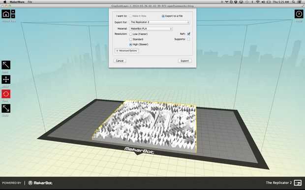 Ahora usted está listo para imprimir el modelo! Presione el botón "Make" y seleccione el nivel de detalle desea (generalmente voy con alta) y luego enviarlo a la impresora 3D golpea "Exportar" o "Make It"!