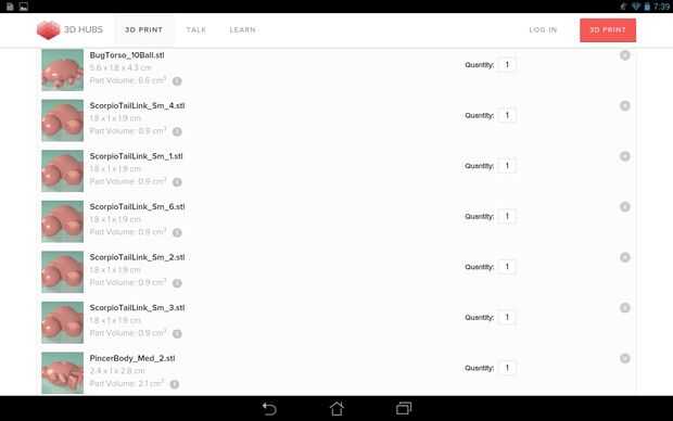 Si tu como me impresión 3D es relativamente nuevo para usted y usted no es dueño de una impresora 3D. Si lo hace, entonces puede utilizar los archivos .stl de Tinkerplay para crear su gcode y listo imprimir. Para el resto de nosotros, cubos 3D pueden ayudar. la carpeta zip que exportó desde la aplicación de Tinkerplay puede cargarse directamente a ejes 3D en www.3dhubs.com donde usted puede hacer compras de miles de servicios de impresión 3D para conseguir sus piezas impresos a un precio competitivo. Usted necesitará crear una cuenta gratis para usar el servicio y pago puede ser hecho a través de su cuenta de Paypal o a través de ejes 3D. He encontrado muchos cubos en mi área para elegir donde puedo arreglar a recoger mis partes o tenerlos enviado a mí, normalmente en 24-48 horas.