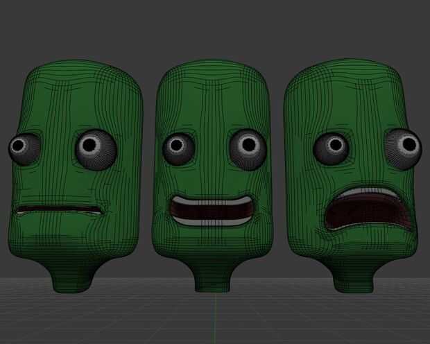 También era importante modelo 3 diferentes expresiones (para Bill, Jeb y Bob) como quisiera 3 modelos Kerbal únicos.