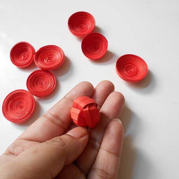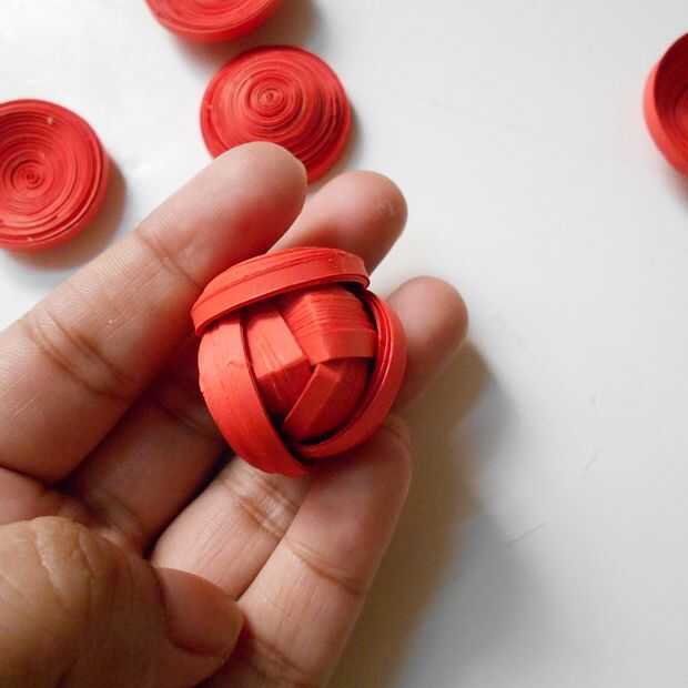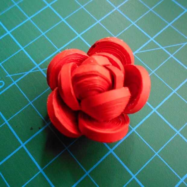 Iniciar este paso sumando las tres bobinas más pequeño con el pegamento. Ahora agregar otros tres pétalo medio domo uno por uno. Utilice las bobinas más amplia en el último. Puede utilizar el papel de un pequeño círculo en la parte posterior para proteger a la flor. Es opcional.