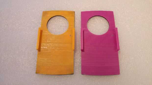 Los dos ejemplos que se muestra en las imágenes de este instructable ha sido creado con una boquilla de 0,4 mm (el modelo morado "B") y una boquilla de 0,3 mm (el modelo naranja "A"). Como se puede ver las diferencias son muy pocas; de hecho este no es el factor más importante: debemos considerar en cambio que el espesor final de cada parte es sólo de 1mm de espesor. Para conceder una muy buena flexibilidad y evitar el riesgo de capa de separación después de algunos experimentos de la mejor solución era establecer un espesor de una sola capa de 0,1 (el más pequeño disponible en la impresora 3D). Con este espesor de la capa también 1 mm de material impreso está construido de 10 rebanadas diferentes otorgando una buena adherencia y flexibilidad.